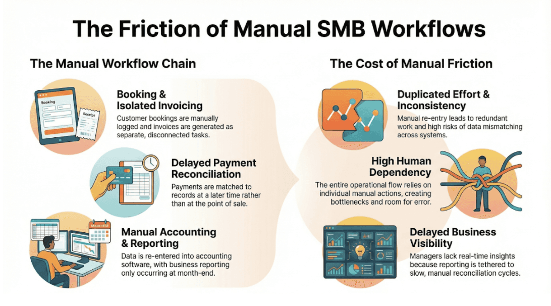 Over the past decade, small and medium-sized businesses (SMBs) have rapidly adopted software tools across nearly every function: payments, booking, CRM, inventory, and accounting.